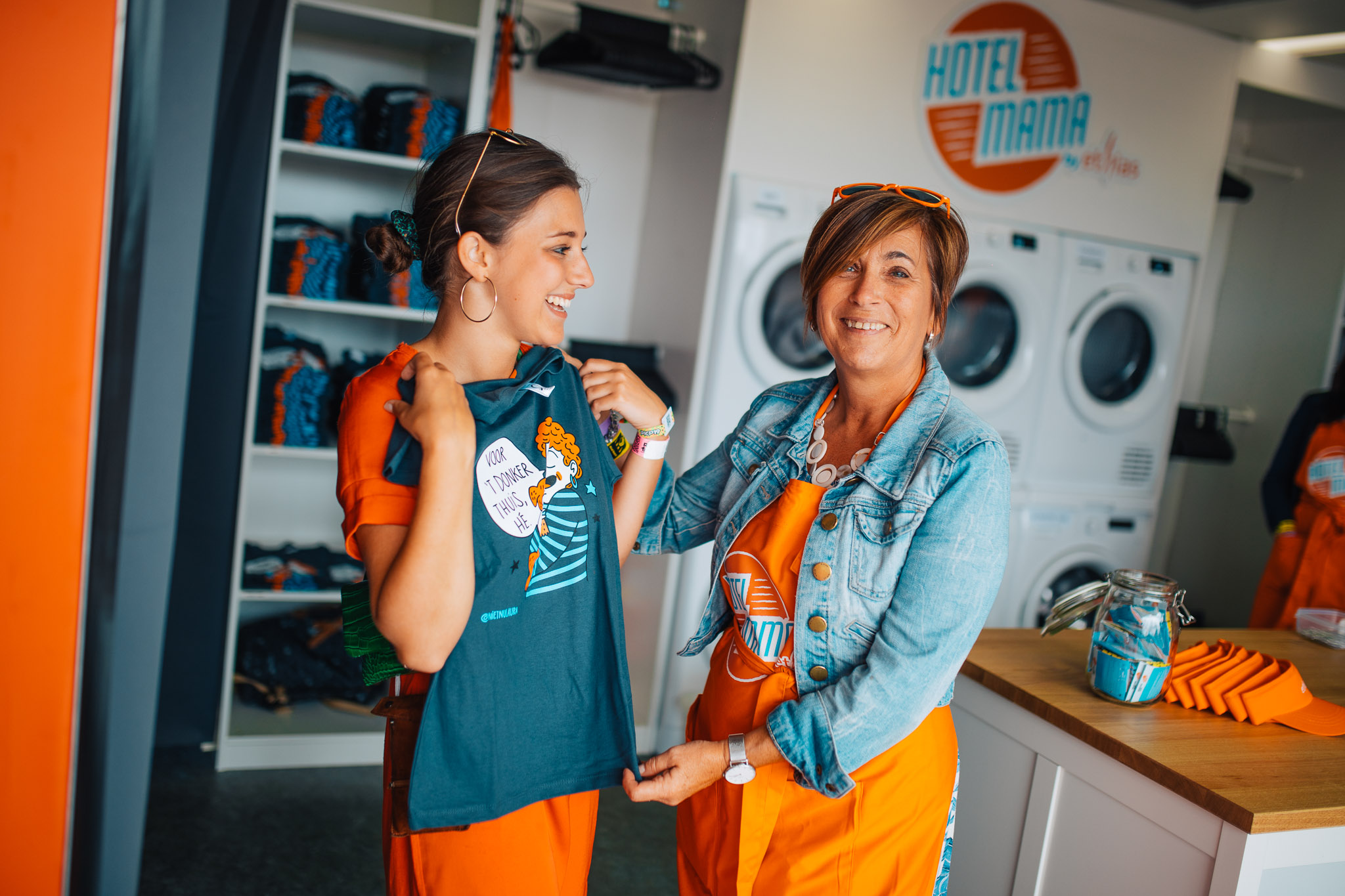 En alsof dat nog niet genoeg was: bij Hotel Mama kon je niet alleen een coole t-shirt van Niet nu Laura scoren en chillen, maar ook je gsm opladen, je kleren laten opfrissen en even ontsnappen aan het stof en de chaos. Een klein stukje thuis, midden in het feestgedruis.