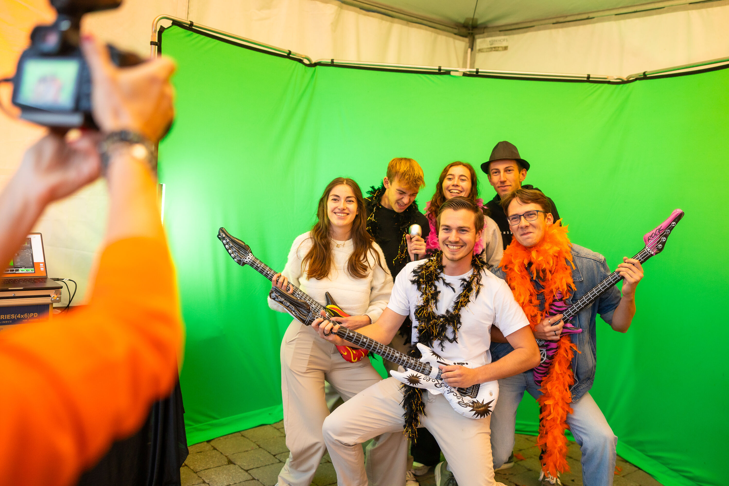 Wie dacht dat alleen de dj’s op de mainstage van de Student Take-Off stonden, heeft onze green screen photobooth nog niet geprobeerd. Even poseren en hop: meteen een Ethias tote-bag vol goodies en een kans op knalprijzen. Van een jaar gratis autoverzekering tot een etentje in een sterrenzaak.