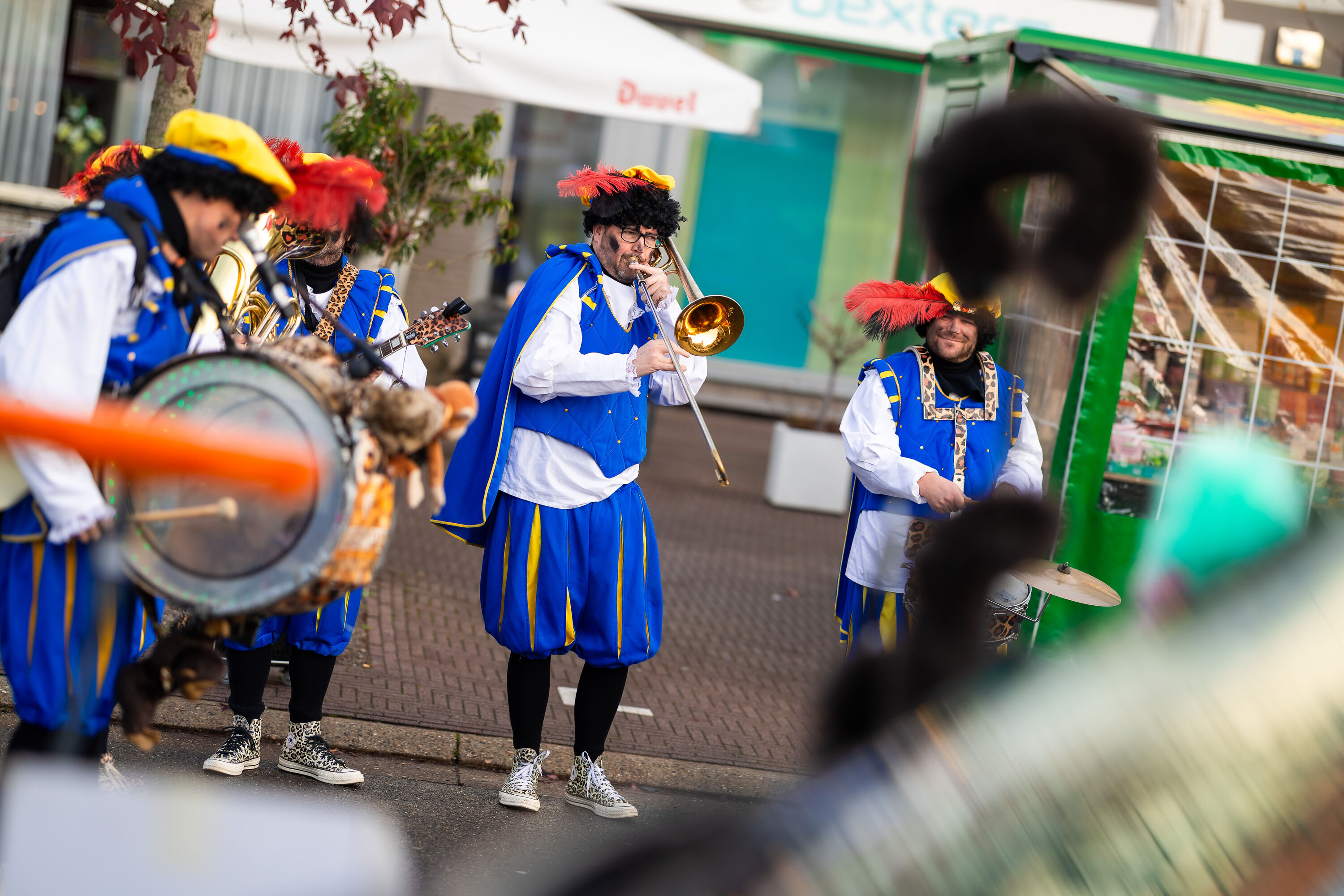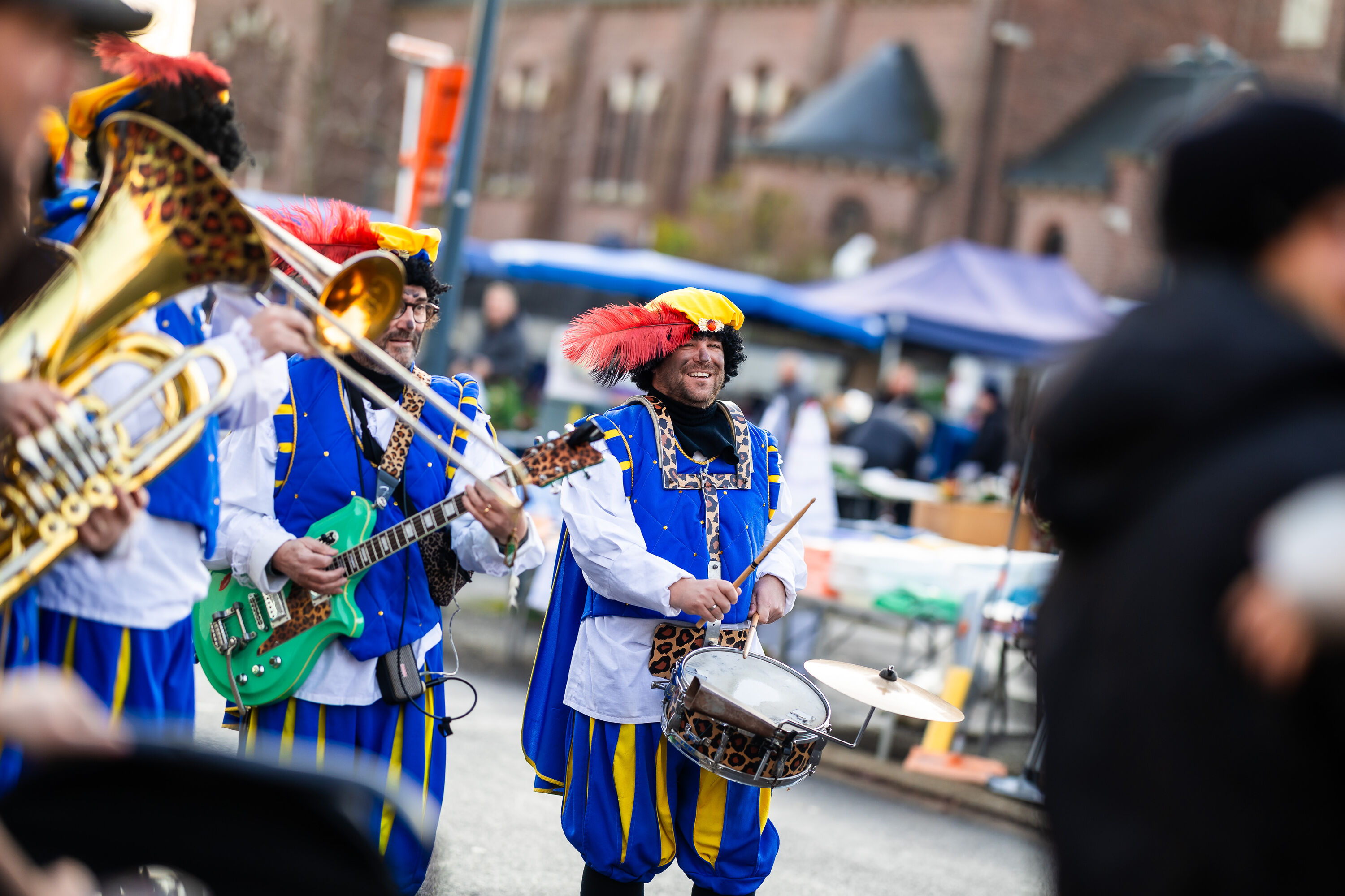 En alsof dat nog niet genoeg was, zette onze knotsgekke Pieten Party Band de hele markt in beweging. Letterlijk! In een mum van tijd veranderde Eisden in een vrolijk kloppend hart vol muziek, dans en plezier. Kinderen die sprongen en draaiden, ouders die vrolijk mee swingden — zelfs de Sint kon niet anders dan zijn heupen losgooien.
